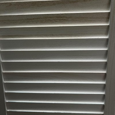 After looking at prices for vertical blinds, that would basically be open all the time with a price tag of $1200. I opted for these room divider shutters to use for privacy on sliding glass doors. I live in a coastal home and I ordered 32 in the white washed one in the brown and they are absolutely beautiful. They come very well packed assembled and I’ve got so many compliments on them. My sliding glass doors are north facing and I like to enjoy the view these make it very simple to fold during the day and night when privacy is needed. I highly recommend these. The colors are beautiful on both of them.