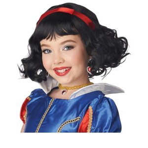 Make all of your child's princess dreams come true with this Snow White Child Wig. This is the perfect wig to complete your daughter's Snow White transformation. This fairy tale wig features a short curly 'do with attached red ribbon for a sweet look. Now she'll be ready to play the part of her favorite Disney princess.
