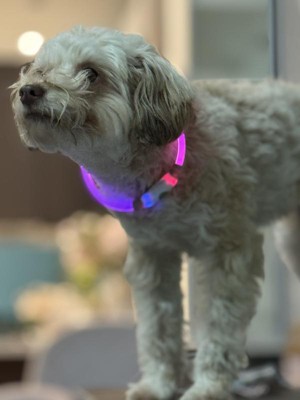 This is so handy to keep your dog in sight with the color changing collar light. Rechargeable and cut to fit.