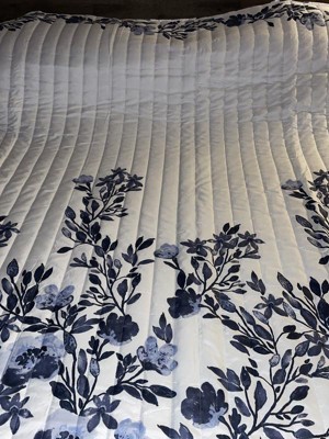 Lush Décor 3pc Full/Queen Tanisha Reversible Quilt Set Navy/White : Microfiber, OEKO-TEX Certified, Botanical Pattern