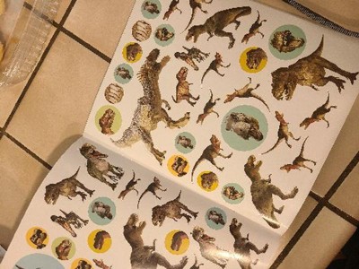 My toddler loves dinosaurs and stickers so this sticker book was perfect for him. He loves the big stickers and the realistic dinosaur ones. Each page has a different set of stickers and they're all different sizes. My son and his cousins love sticking these on each other, it also doesn't leave nasty residue on furniture or surfaces which is great! The reason why I knocked off a star is because they're not really reusable, they loose their stickiness after one use.