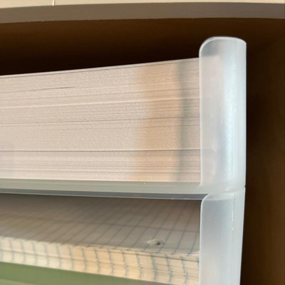 I'm a big fan of 99.9% of Brightroom's organizational items, but this letter tray is a huge fail. First, the literal name of the item is "stacking letter tray" but once stacked, the openings are so small that you can't access any of the papers inside. And forget about being able to store any files or folders, this is just barely sized for a regular 8.5x11, not anything else- even the school folders sold by Target itself. Oh, and I picked up all three trays at the store and all three trays were warped so they wouldn't stack but kept falling into one another. If I bent them back enough, they could just barely stack together, but the slightest bump would make them fall again. So I can't imagine this in a high-traffic environment. Unfortunately, I took off the labels before testing, so I can't return them and am just stuck with three paperweights. Maybe that's their true calling....