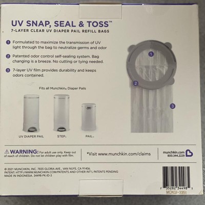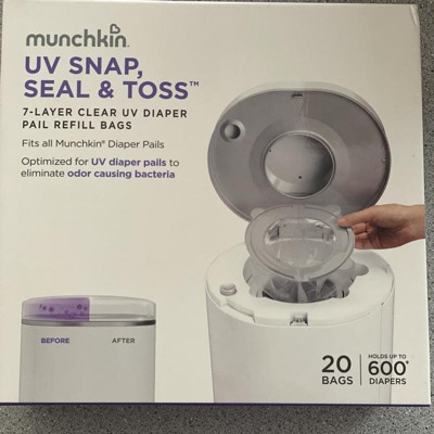 Munchkin UV Snap, Seal & Toss Diaper Pail Refill Bags - 20pk: For Arm and Hammer & Diaper Genie, Plastic, 600 Maximum Capacity