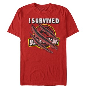 Men's Jurassic Park I Survived The Island, Raptor Claw Tear T-Shirt - Red - 2X Large