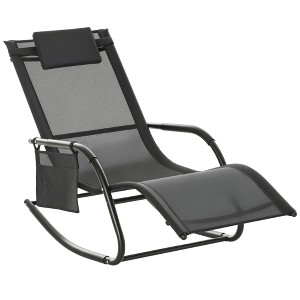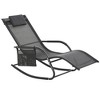 Outsunny Outdoor Rocking Chair, Chaise Lounge Pool Chair for Sun tanning, Sunbathing, a Rocker with Side Pocket, Pillow for Patio, Black
