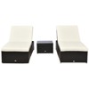 Outsunny Chaise Lounge Set of 2 w/ 5 Angle Backrest, Table, Cushions, PE Wicker Poolside Chairs, 3-Piece Patio Furniture Set, Dark Brown/Cream White