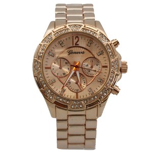 ROSE GOLD FANCY RHINESTONE 3-DIAL METAL WATCH