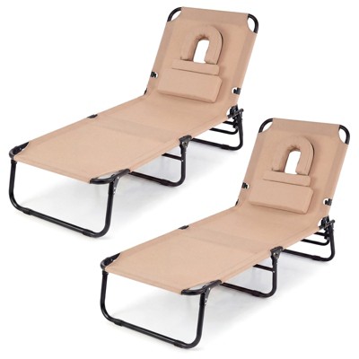 Costway Foldable Lounge Chair Adjustable Outdoor Beach Patio Pool Recliner with Sun Shade
