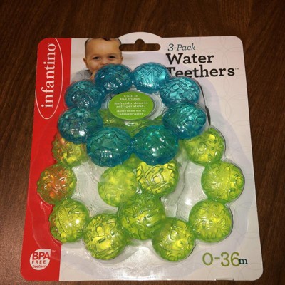 [This review was collected as part of a promotion.] The infantino water tethers have really helped my baby and I get through teething!! I can freeze them or he just likes to gum on them without freezing.