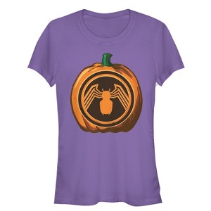 Juniors Womens Marvel Halloween Venom Logo Pumpkin T-Shirt - Purple - Large