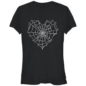 Juniors Womens Lost Gods Halloween Heart Spider Web T-Shirt - 1 of 3