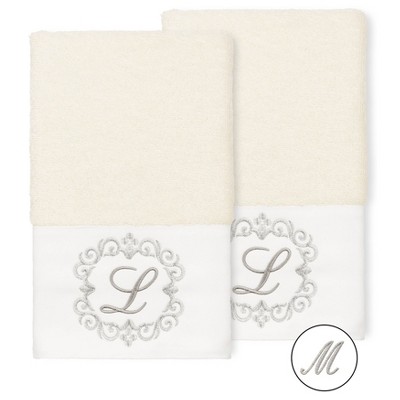 Set of 2 Monogrammed Washcloths White/E - Linum Home Textiles: Bathroom Essentials