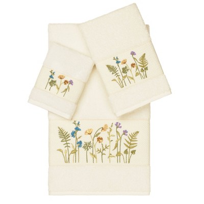 Set of 3 Braelyn embroidered towels Cream - Linum Home Textiles: Dragonfly Pattern, Midweight Terry