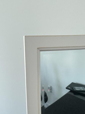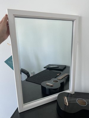 [This review was collected as part of a promotion.] This mirror is perfect for hanging on the wall over my desk shelf. Though average sized, a person is able to see themselves full body if taking a step back as the mirror is large enough for this purpose. The white borders are a true pure white and blends seamless with my white walls. The mirror also comes with hanging post for vertical or horizontal mounting.