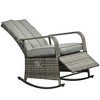 Outsunny Outdoor Rattan Rocking Chair Patio Recliner with Soft Cushions, Adjustable Footrest, Max. 135 Degree Backrest, PE Wicker, Gray