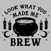 This fun and Halloween Women's Tee says "Look What You Made Me Brew" along with a bubbling cauldron, candles, and crescent moons.