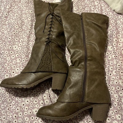 Make every step count in LUKEES by MUK LUKS Women's Lacy Leo Boots. This water-resistant tall boot has a stacked block heel and decorative side lace up detail that reveals a peek-a-boo knit giving your outfit a sassy flair. Wipe with a damp cloth to clean, no bleach, lay flat to dry. Imported. - Durable TPR Sole - 100% Polyester Faux Fur Insole - 100% Polyurethane Upper - 100% Polyester Faux Fur Lining - 2.5 Inch Heel -Memory Foam Insole - Multiple color options available - Women?s Whole Sizes 6-11
