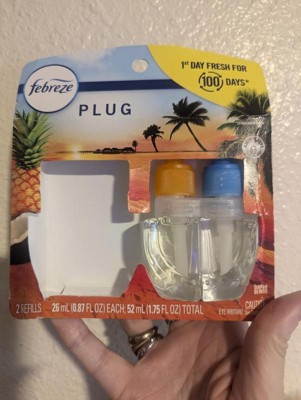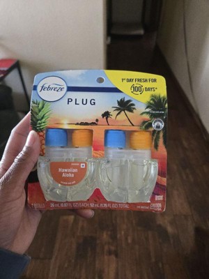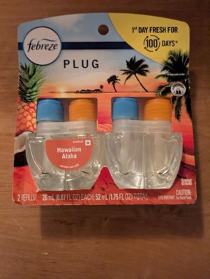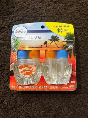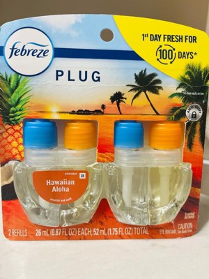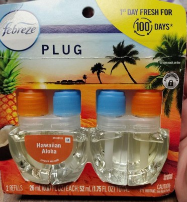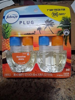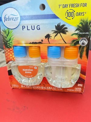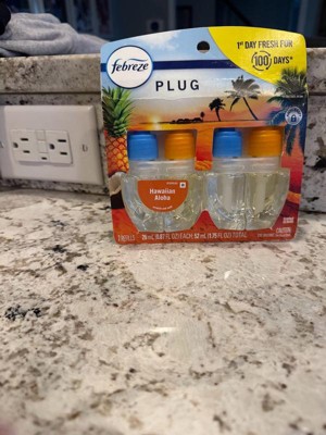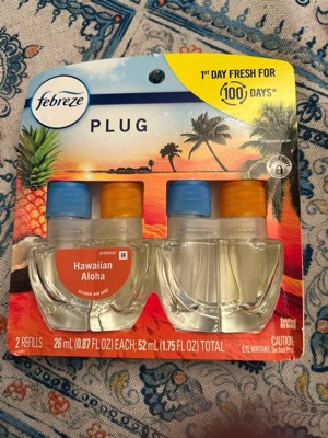 Febreze Odor-Fighting Fade Defy Plug Air Freshener Refill - Hawaiian Aloha - 0.87 fl oz: Dye-Free, Phthalate-Free, Electric-Powered