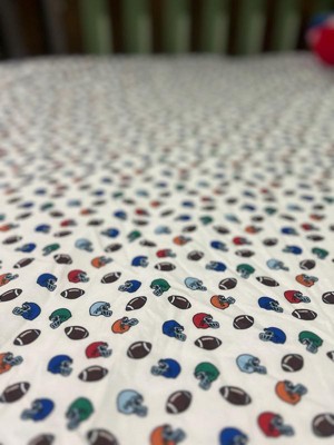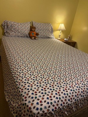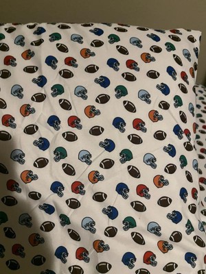[This review was collected as part of a promotion.] Myson. Loves his new football themed sheet set! It’s high quality fabric is soft and comfy with bold and vibrant sport themed graphics that are pleasing to sports fans is all ages!l and genders !