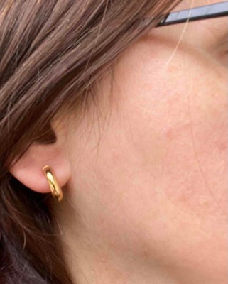 Love hoop earrings! These are cute and dainty. They are perfect for your everyday look. They hug the earlobe perfectly. They are small but give a big impression. I wear these at work or a night out! The hoop is 14k gold plated and the post is sterling silver. I received an incentive to write this review.