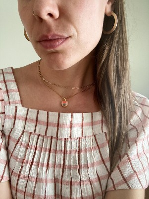 This necklace is a staple for me. I wear it everyday, and it is definitely worth the extra money. I wear it in the water, in the shower, and it will not rust. I’ve gone through a few, just from losing it. I will always re purchase any gold from this brand!