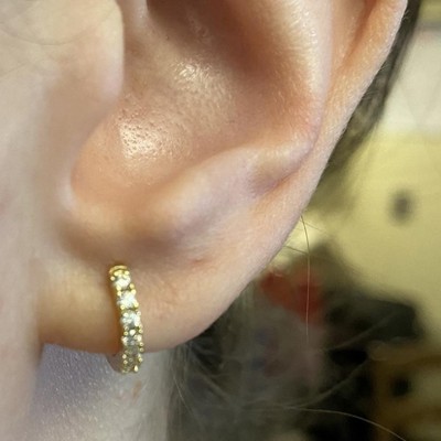 The 14K Gold Plated Cubic Zirconia Huggie Hoop Earrings from A New Day™ are the perfect way to give your favorite outfits a little extra something. These lovely earrings are made out of 14K gold-plated, nickel-free metal and feature cubic zirconia stone details that add a lovely touch to your looks. Plus, the clip-in closure style helps keep them in place as you go about your day.