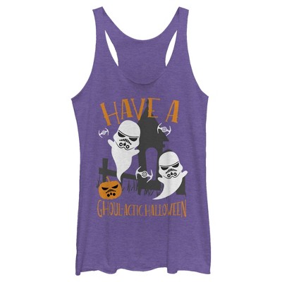 Go white with fright or just dress like a stormtrooper this holiday with a funny Star Wars Ghoulactic Halloween Stormtrooper style! Two ghostly Stormtroopers are printed with "Have a Ghoulactic Halloween" on this Halloween tee.