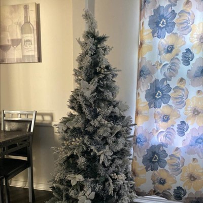 Not as described at all. It was not flocked, it had white and green plastic branches that were UGLY!