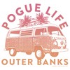 A distressed pink and orange graphic of a VW Bus with the phrase "Pogue Life Outer Banks" is featured across this fun Men's Hoodie from Outer Banks on Netflix.