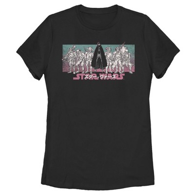Panels featuring Darth Vader, Boba Fett, and a Stormtrooper in an anime style from the new series Star Wars: Visions are featured across the front of this officially licensed Womens' Tee.