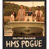 A photo of John B and the crew on the boat with "Outer Banks HMS Pogue" underneath is shown on this Women's Tee from Outer Banks on Netflix.