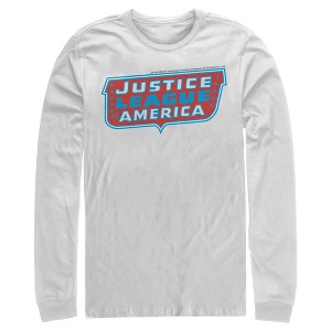 Men's Justice League Patriotic Frame Logo Long Sleeve Shirt - White - Large