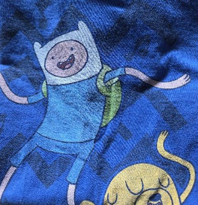 The graphic was very faded when it arrived and it’s really big, my son is 6 but would fit a 9/10 year old better. had to return it. Also not very soft material. Love adventure time but this shirt doesn’t cut it.