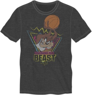 • GRAPHIC TEE: Foghorn Leghorn, Bugs Bunny, Daffy Duck, and Taz play a round of basketball on this graphic tee while green and blue letters above them spell out, "Tune Squad." Celebrate the Space Jam movie with this comfy t-shirt.