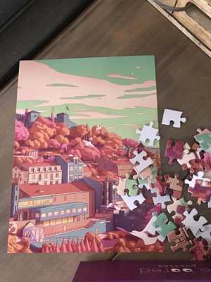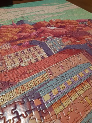 Lockdown turned me into a jigsaw puzzle junkie and I am always on the lookout for puzzles that I wouldn't mind hanging up afterwards. The modern, bright colors and clean lines of this landscape are even more interesting since they are a part of a triptych of puzzles that can fit together. Even with a small colorway, the varied shapes and textures on the pieces make it easier to fit together. I would definitely get puzzles from this company again.