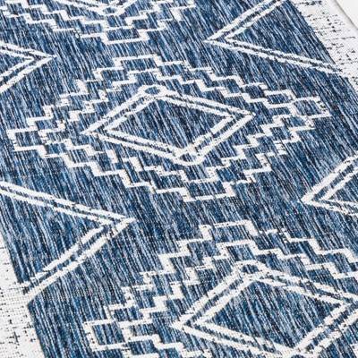 JONATHAN Y Marokko Diamond Medallion Ivory/Black 2 ft. x 8 ft. Indoor/Outdoor Runner Rug, Non-Shedding, Easy-Clean