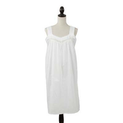 Saro Lifestyle Pure Cotton Full-Length Sleeveless Embroidered Nightgown, White, Small