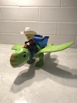 [This review was collected as part of a promotion.] My son was very excited to get the Dino Ranch Flying Dino with Jon toy in the mail. He liked that there were multiple pieces and you could take the character off of the dinosaur. Has 3 phrases and has moving arms, legs and head.