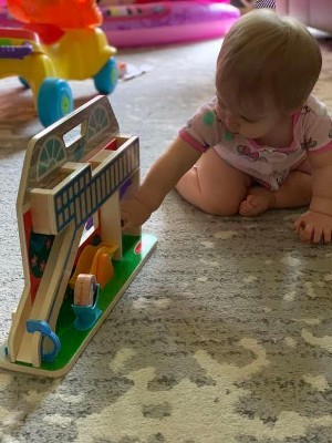 [This review was collected as part of a promotion.] My son loves this toy. I love the fact it's made out of wood and doesn't have any electric parts. The "people" are big enough that he can grab them and play with them comfortably. He loves sending them down the slide. I would recommend Melissa and Doug toy to everyone.