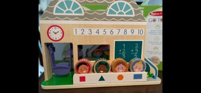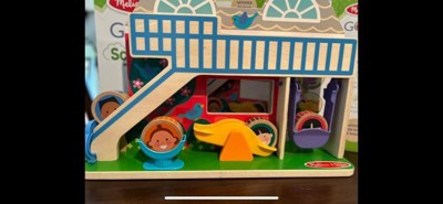 [This review was collected as part of a promotion.] The Melissa and Doug GO TOTS Schoolyard Tumble toy is very fun. It has activities on both sides. There is an adorable schoolhouse side and the back is a fun playground with a slide, swing, and teeter totter. The round wooden people are durable and adorable. This toy is a hit.