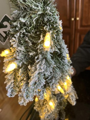 [This review was collected as part of a promotion.] I love Christmas but not the setting up and taking down. This frosted Albert pine was a terrific choice. It took me only about 15 minutes to set up and it looks so cute. I love the flocking and the branches were dense enough to hide the pole. The shape makes it easy to put up just about anywhere. The only critic I have is the bunch of cords that you can’t really hide.