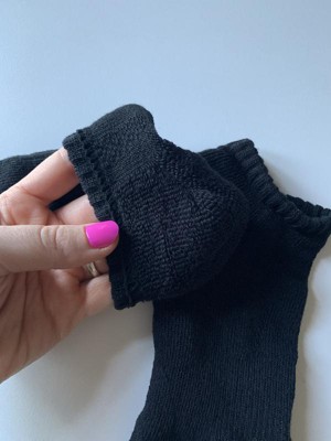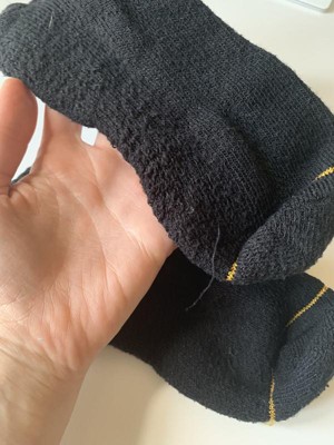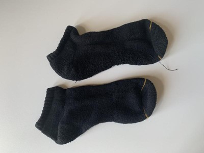 My husband had been searching for some black ankle socks to wear to work with his leather-detailed sneakers, and these suited the style perfectly. The feel and fit are comfortable, and I appreciate that these are crafted with 79% recycled polyester. However, the construction just doesn’t hold up. We washed and dried these as instructed and within two wears multiple socks had 2-4 inch unraveled threads, pilling, and loose stitching.