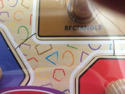 My special needs son speech therapist recommended this. So we ordered and I am very disappointed in the quality of the puzzle. The puzzle has a noticeable scratch across the one of the shapes, scratches all over puzzle and the rectangle shape has this weird circle on it. This is what I can see before I even open the puzzle. For the price we paid I expected a better quality puzzle and have gotten that in the past with Melissa and Doug items.