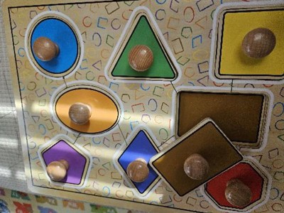 A good learning tool for grandkids for colors and shapes and easy to pull out knobs on each piece.