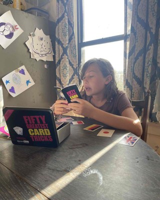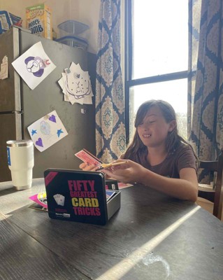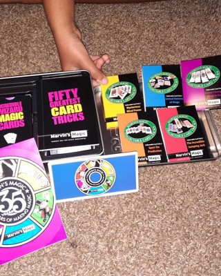 I bought Marvin's Magic Fifty Greatest Card Tricks for my children to play. My 8 year old was very excited to try it. My 11 year old wasn't as enthusiastic at first but once they opened it and figured out how to do some of the tricks she was enjoying herself even more than her sister! It has an instruction booklet included but you can also download an app for video instructions, which we found very helpful. The set comes in a very nice tin so it would make a great gift. My girls really enjoyed learning different tricks and are excited to try some out on their brothers. Their favorite was Mysterious Mind Power! I received an incentive to write this review.