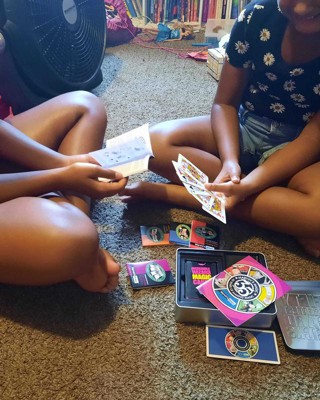 This is a fun little card trick set that comes in a handy tin to keep everything together. There’s a small book inside that walks you through the different tricks. There’s also a magic app that has bonus ticks and video instructions the instructions are little black and white drawings, but explains it well. One of the tricks requires you to cut the cards in half, so have a pair of scissors handy as well. I received an incentive to write this review.
