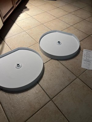 [This review was collected as part of a promotion.] The Rev-A-Shelf 20 in lazy susan d shaped cabinet polymer two-tier shelf in white is a nice addition to any kitchen. It comes with easy to use instructions for installation. It has sturdy plastic shelves with metal bars for stability. It allows you to transform a cabinet into a swirling cabinet for easy access to all your pantry goods. We are looking at upgrading our kitchen, and this will be a great addition to that process. You could also make it into a 2 tier swivel shelf if you can't make it into an actual lazy susan, so it's multi-purpose in its uses. I am looking forward to using this.