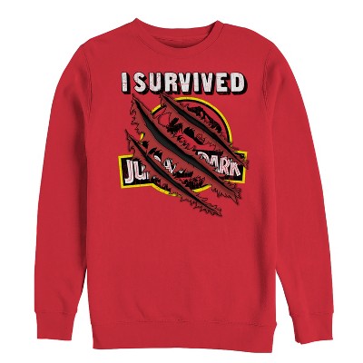 Men's Jurassic Park I Survived Scratch Pull Over Hoodie - Red - Small