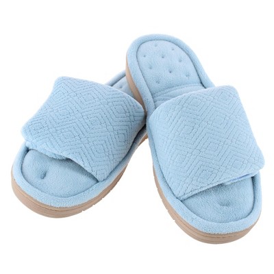 • A: The slippers have advanced memory foam and a moisture-wicking microterry lining for added comfort.
