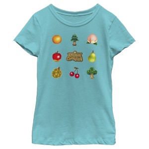 Girl's Nintendo Animal Crossing Items Found Title Logo T-Shirt - Tahiti Blue - Small
